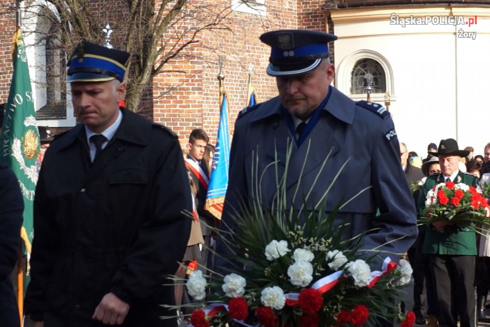 Mł. insp. Grzegorz Grabiec piastujący stanowisko Komendanta Miejskiego Policji w Żorach uczestniczył dzisiaj w lokalnych obchodach Narodowego Święta Niepodległości. U boku delegacji reprezentujących miejscowe władze, radnych, żorskie instytucje i organizacje w hołdzie bohaterom walk o Niepodległą Polskę złożył wiązanki kwiatów pod Pomnikiem Walczących o Wolną Polskę oraz pod tablicą upamiętniającą sylwetkę Marszałka Piłsudskiego.