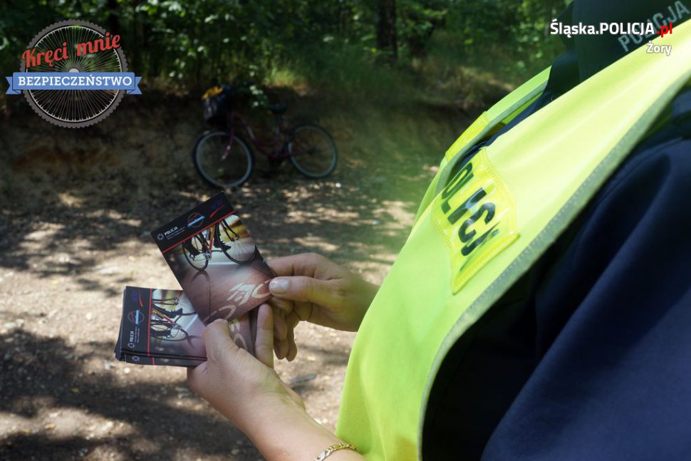 Szefowa żorskiej drogówki - podinsp. Agata Głowacka w ramach zainicjowanej przez MSWiA kampanii "Kręci mnie bezpieczeństwo", wyruszyła dzisiaj w drogę z radami dla rowerzystów. Życząc im bezpiecznej jazdy, pani naczelnik przekazywała miłośnikom jednośladów specjalne wkładki z podstawowymi przepisami ruchu drogowego. Materiały profilaktyczne otrzymali nie tylko rowerzyści pokonujący miejskie ścieżki, ale i ci wypoczywający na żorskim kąpielisku.