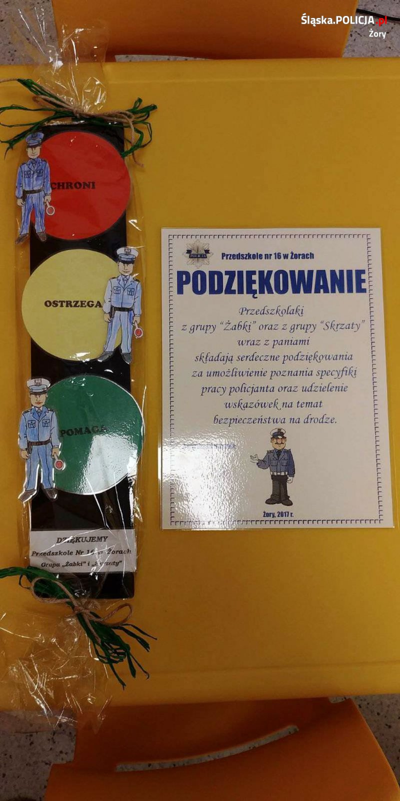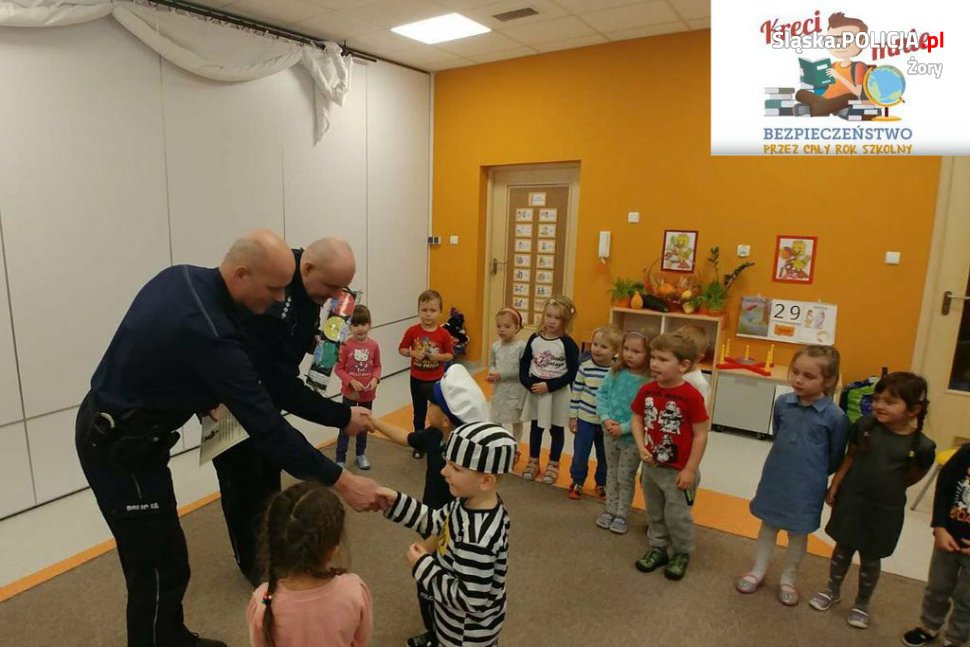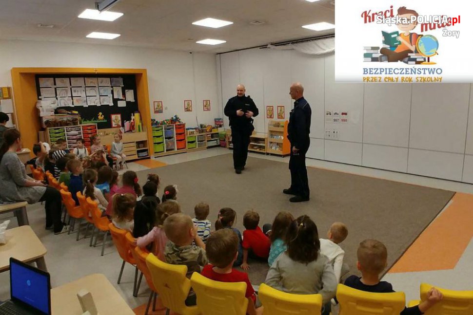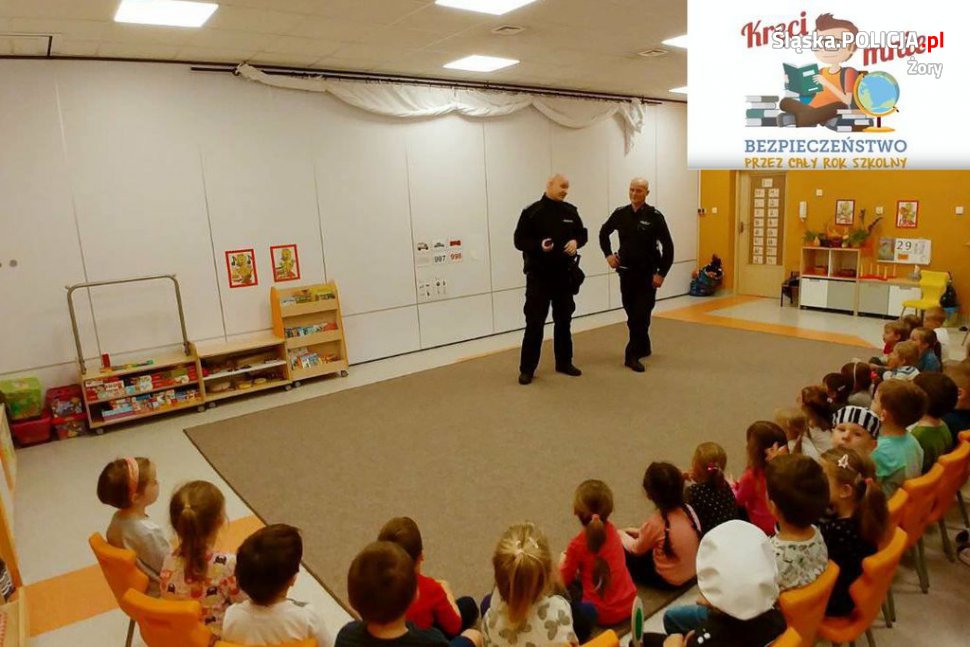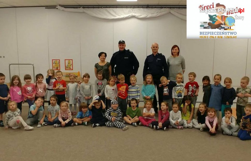 Jak należy bezpiecznie poruszać się w pobliżu dróg, kim jest oby i kiedy korzystać z numerów alarmowych? Rozmawiali o tym dzisiaj z przedszkolakami mundurowi z żorskiej komendy. Pożyteczną wiedzą na temat bezpiecznych zachowań z najmłodszymi podzielili się dzielnicowi, a także policjant zajmujący się profilaktyką społeczną w żorskiej jednostce.