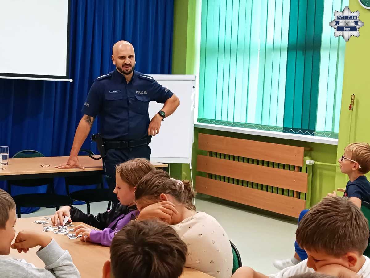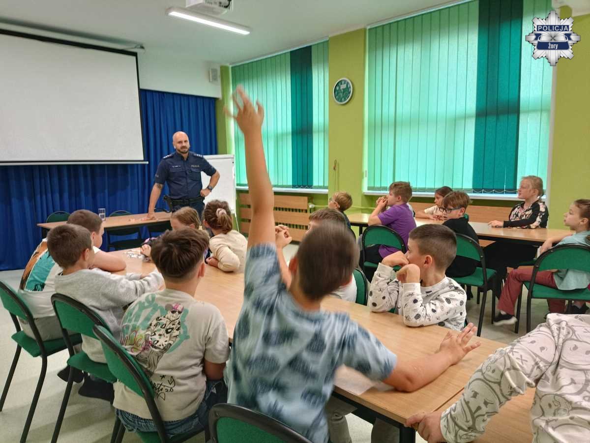 Profilaktyk żorskiej policji odwiedził Szkołę Podstawową nr 13 im. Polskich Olimpijczyków w Żorach, aby przypomnieć uczniom klasy trzeciej o podstawowych zasadach bezpieczeństwa. Mundurowy omówił prawidłowe korzystanie z przejść dla pieszych, zatrzymywanie się przed sygnalizacją świetlną oraz konieczność noszenia elementów odblaskowych, które zwiększają widoczność na drodze.