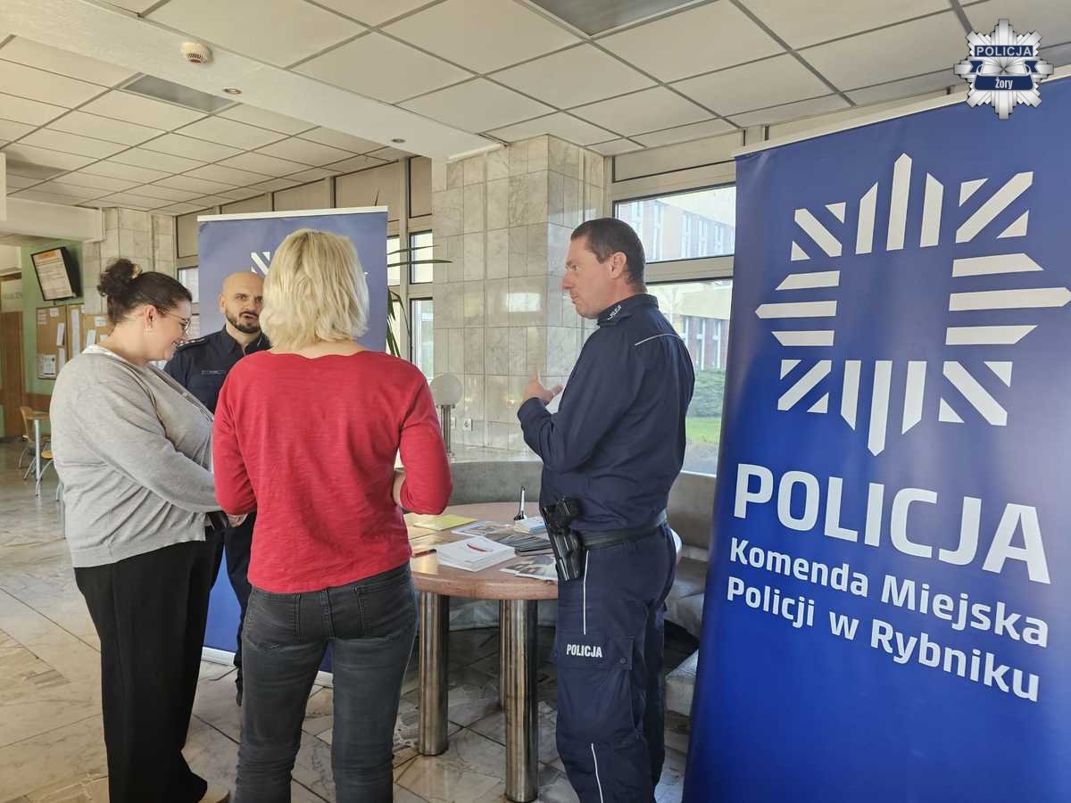 20 października 2025 roku w siedzibie Zakładu Ubezpieczeń Społecznych w Rybniku żorscy mundurowi wspólnie z policjantami z Komendy Miejskiej Policji w Rybniku uczestniczyli w spotkaniu z seniorami w ramach ogólnopolskiej akcji „Świadome decyzje – bezpieczny senior”. Podczas prelekcji rozmawiali o bezpieczeństwie osób starszych, przypominając o kampaniach „Znam te numery”, „Fałszywa tożsamość – prawdziwe ryzyko” oraz „Bezpiecznie, zdrowo, bezgotówkowo”.