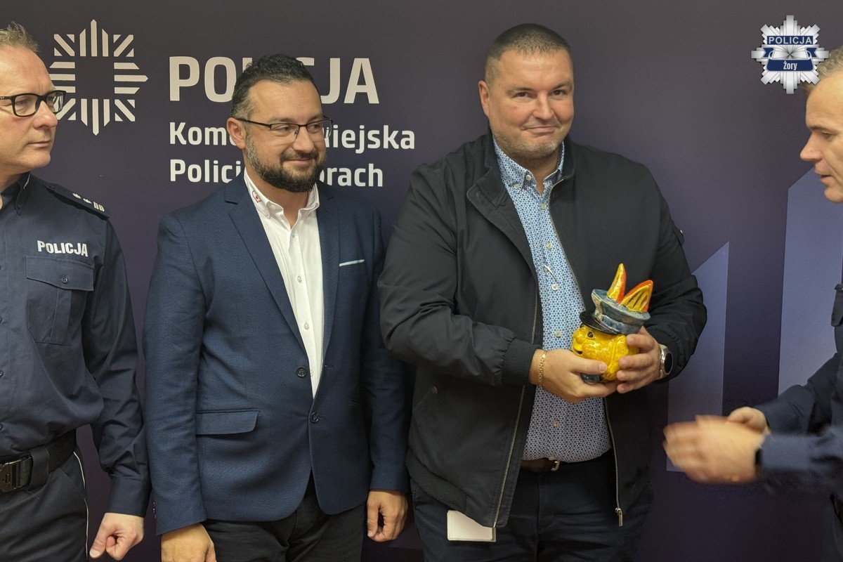 Na zakończenie spotkania Komendant Miejskiej Policji w Żorach, podinsp. Marek Ryszka, złożył na ręce Prezesa Proma Group Pana Gracjana Lewickiego podziękowanie w postaci ceramicznej odsłony żorka policjanta – symbolicznego wyrazu wdzięczności za wsparcie i zaangażowanie w działania na rzecz lokalnej Policji.