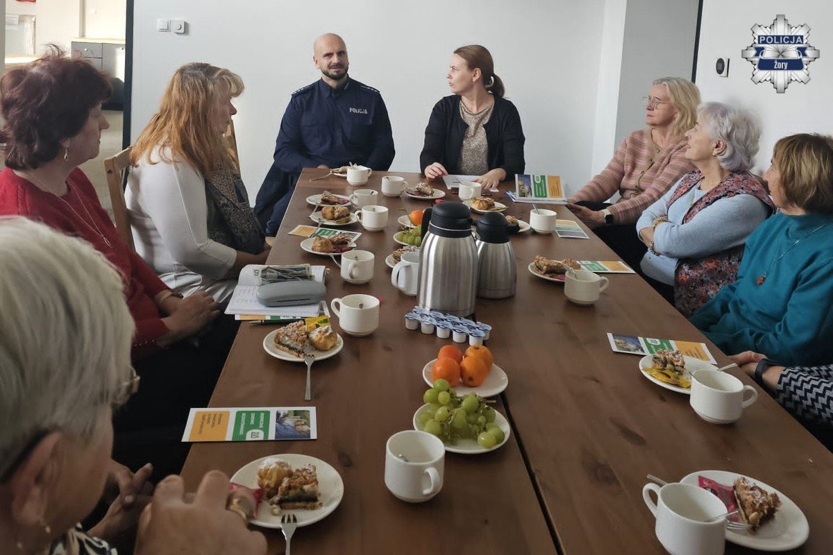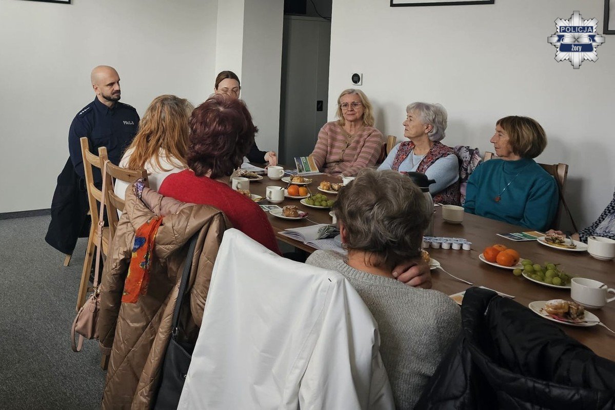W czwartkowe popołudnie odbyło się spotkanie edukacyjne skierowane do osób starszych, podczas którego mundururowy oraz pracownik ZUS omówili tematy związane z bezpieczeństwem finansowym, zdrowym stylem życia oraz korzystaniem z bezpiecznych form płatności.