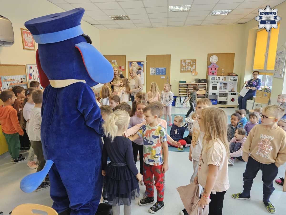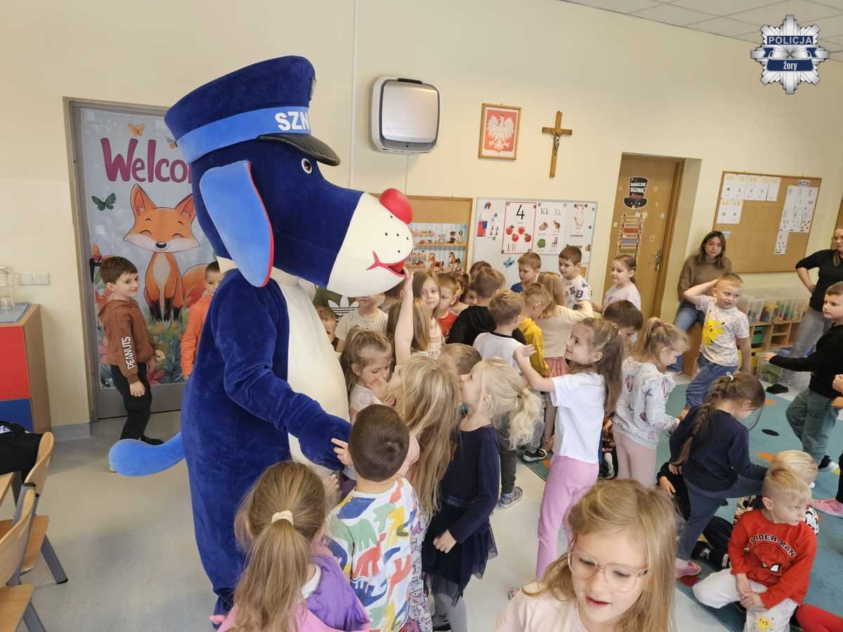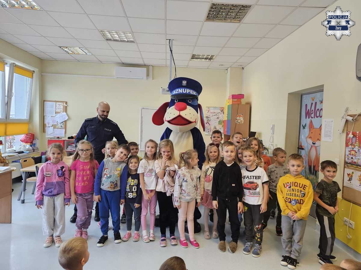 Mundurowy tłumaczył dzieciom, jak ważne jest noszenie elementów odblaskowych, zwłaszcza po zmroku, i w jaki sposób pomagają one być widocznym dla kierowców. Maluchy aktywnie uczestniczyły w zajęciach, odpowiadały na pytania oraz mogły zobaczyć, jak wygląda codzienna praca policjanta. W spotkaniu uczestniczył także Sznupek, maskotka Śląskiej Policji, która urozmaiciła spotkanie i zachęcała dzieci do nauki zasad bezpieczeństwa w zabawny i przystępny sposób.