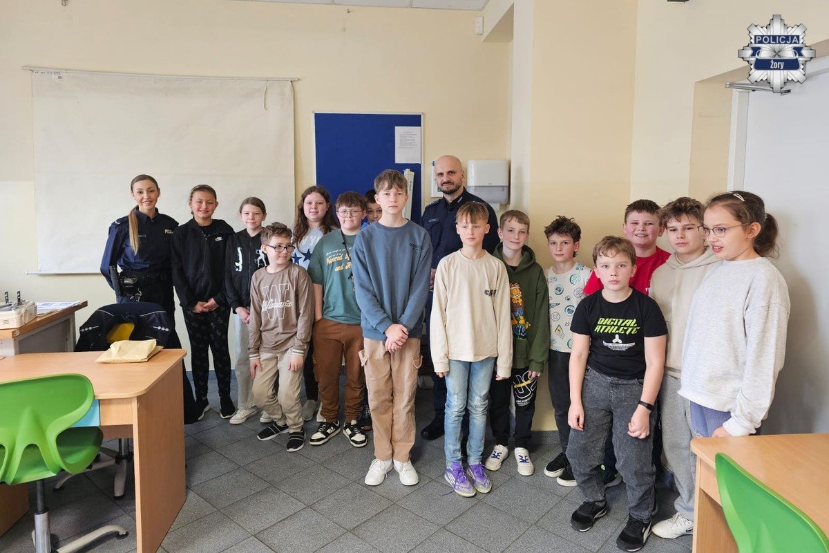 Uczniowie klas 4 i 8 aktywnie uczestniczyli w spotkaniu, chętnie zabierali głos i zadawali pytania. Tego typu działania profilaktyczne pozwalają budować świadomość młodych ludzi i kształtować bezpieczne postawy zarówno w szkole, jak i poza nią.