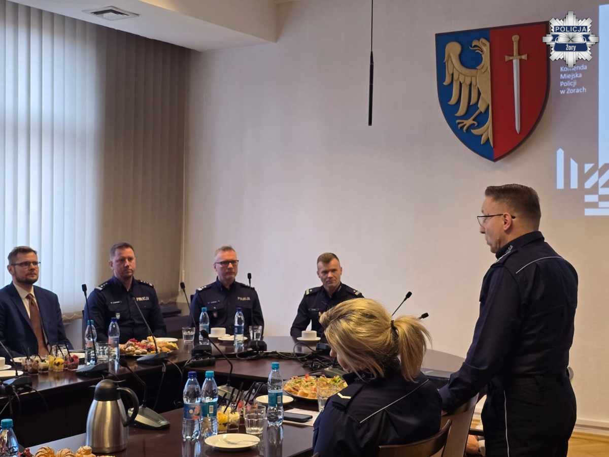 W czwartek w sali narad Urzędu Miasta w Żorach odbyła się roczna odprawa żorskiej Policji, podczas której podsumowano działalność komendy w 2025 roku. Omówiono także priorytety i wyzwania stojące przed policjantami w nadchodzącym czasie. Spotkanie było okazją do mianowania policjantów na wyższe stopnie służbowe, wyróżnienia najlepszych funkcjonariuszy oraz podkreślenia znaczenia współpracy na rzecz bezpieczeństwa mieszkańców.