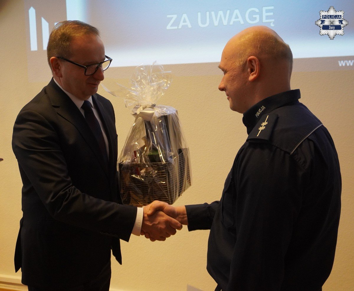 Wystąpienie wygłosił także Prezydent Miasta Żory Pan Waldemar Socha, który podkreślił rolę miasta jako partnera Policji w budowaniu bezpieczeństwa. Zaznaczył, że współpraca samorządu z Policją oraz innymi służbami ma realny wpływ na poprawę bezpieczeństwa i komfortu życia mieszkańców, a podejmowane wspólnie inicjatywy wzmacniają poczucie odpowiedzialności za lokalną społeczność.