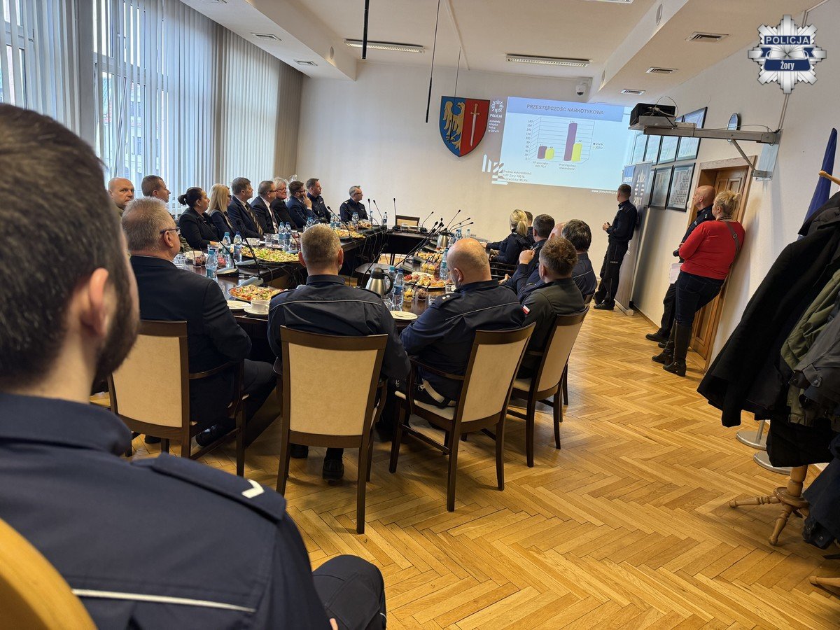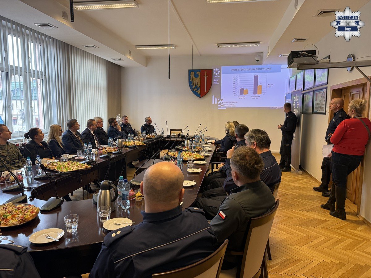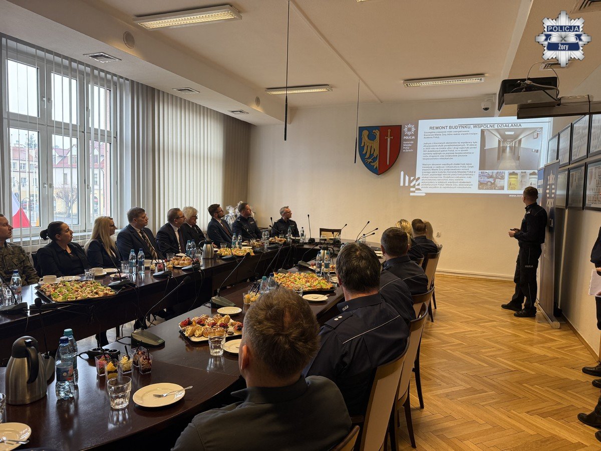 W czwartek w sali narad Urzędu Miasta w Żorach odbyła się roczna odprawa żorskiej Policji, poświęcona podsumowaniu pracy komendy w 2025 roku. Spotkanie poprowadził Komendant Miejski Policji w Żorach podinspektor Marek Ryszka, który przedstawił wyniki osiągnięte przez żorską komendę w minionym roku oraz wskazał najważniejsze wyzwania i kierunki działań na kolejne miesiące.