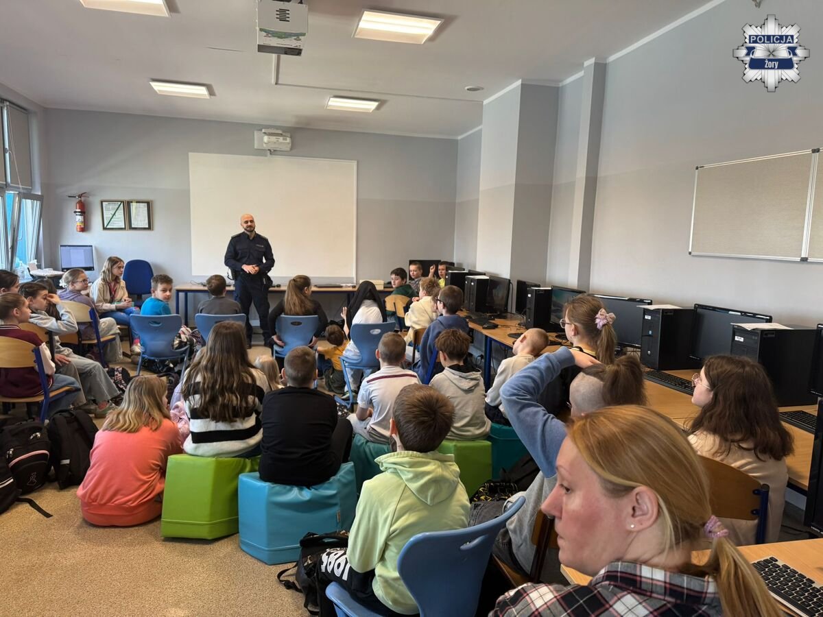 W środę w Szkole Podstawowej nr 4 w Żorach policjant przeprowadził zajęcia profilaktyczne dla uczniów klas czwartych. Podczas spotkania poruszył temat przemocy rówieśniczej, zwracając uwagę na jej różne formy – zarówno fizyczne, jak i słowne czy te pojawiające się w internecie.
