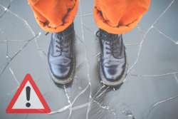 Ujemne temperatury powodują zamarzanie rzek, jezior i zbiorników wodnych. Taka sytuacja wydaje się być idealna do zabawy w ślizganie lub jazdy na łyżwach. Pamiętajmy jednak, że wchodzenie na zamarzniętą taflę wody wiąże się z ryzykiem jej załamania. Wpadnięcie do wody w takim wypadku to bezpośrednie zagrożenie życia i zdrowia.