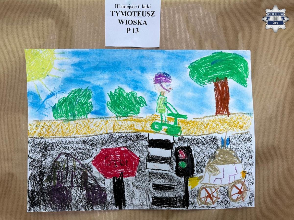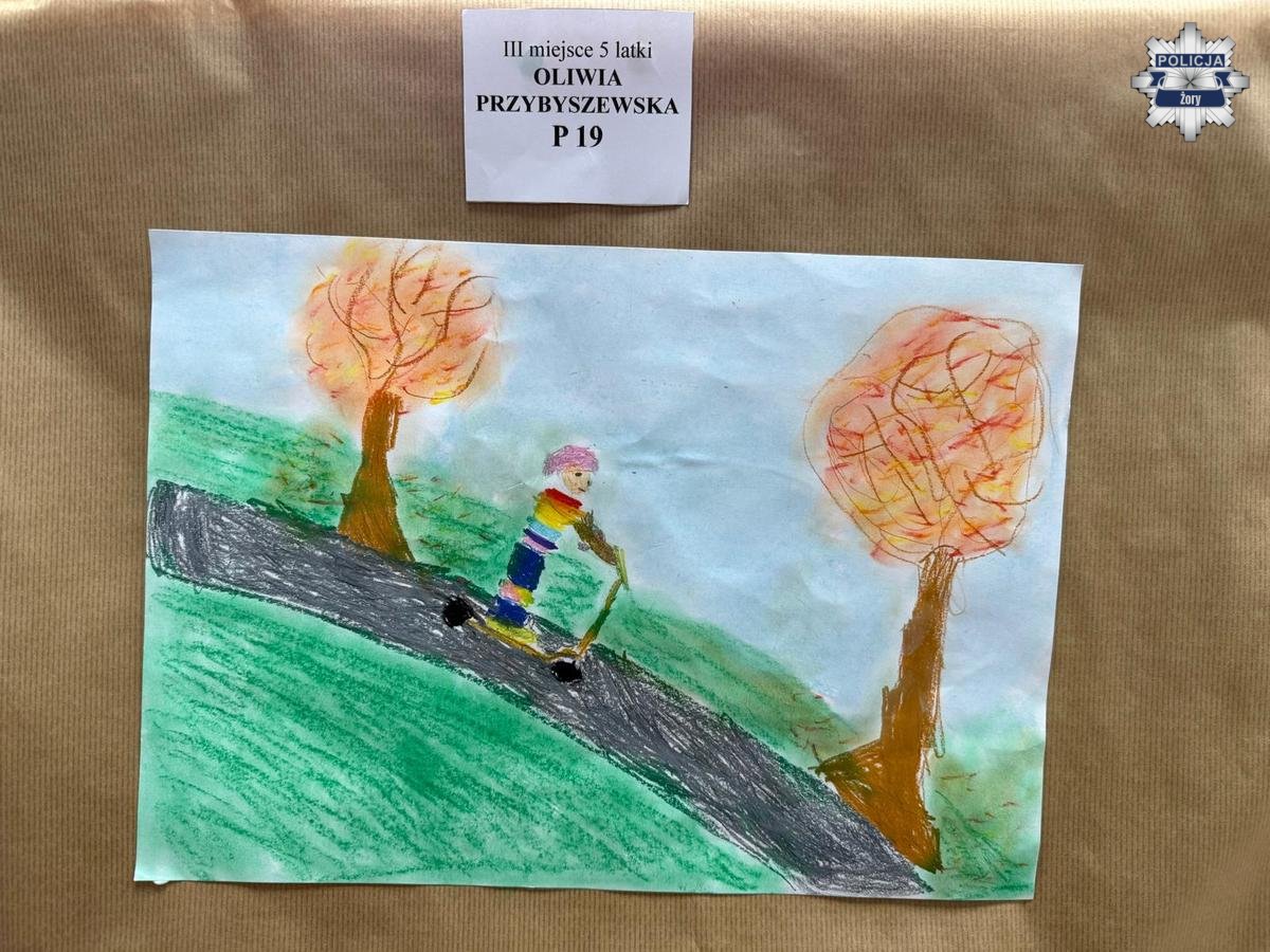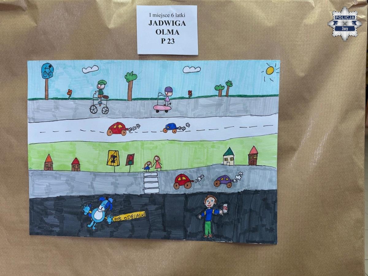 Jury konkursowe wyróżniło najciekawsze, najbardziej pomysłowe i zgodne z tematyką prace. Zwycięzcy otrzymali liczne nagrody, w tym te związane z bezpieczeństwem – elementy odblaskowe, akcesoria rowerowe oraz materiały edukacyjne. Policjanci nawiązali także do nadchodzących zmian w przepisach, zgodnie z którymi obowiązek stosowania kasków ochronnych będzie dotyczył użytkowników rowerów, hulajnóg i UTO do 16. roku życia, co ma jeszcze skuteczniej chronić najmłodszych uczestników ruchu drogowego.