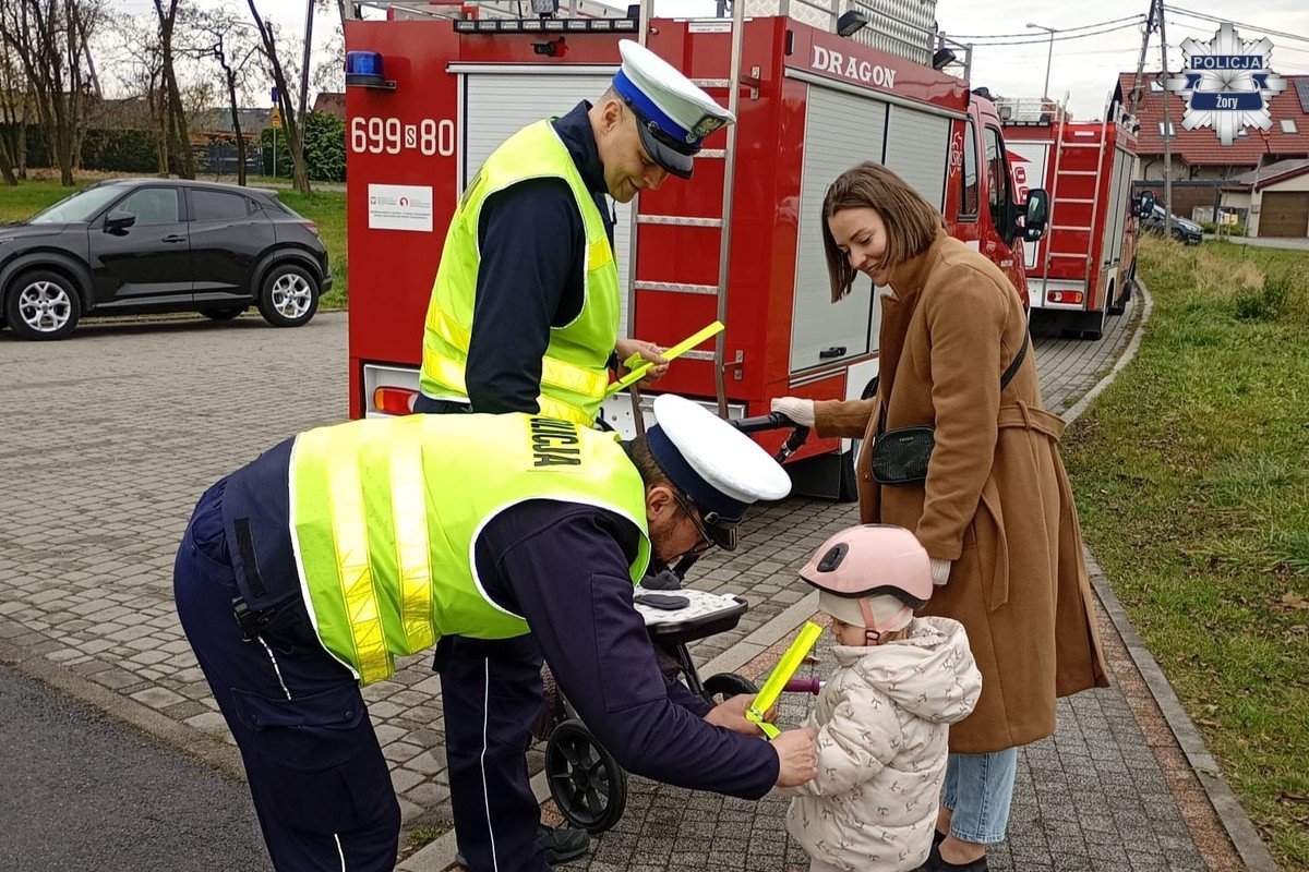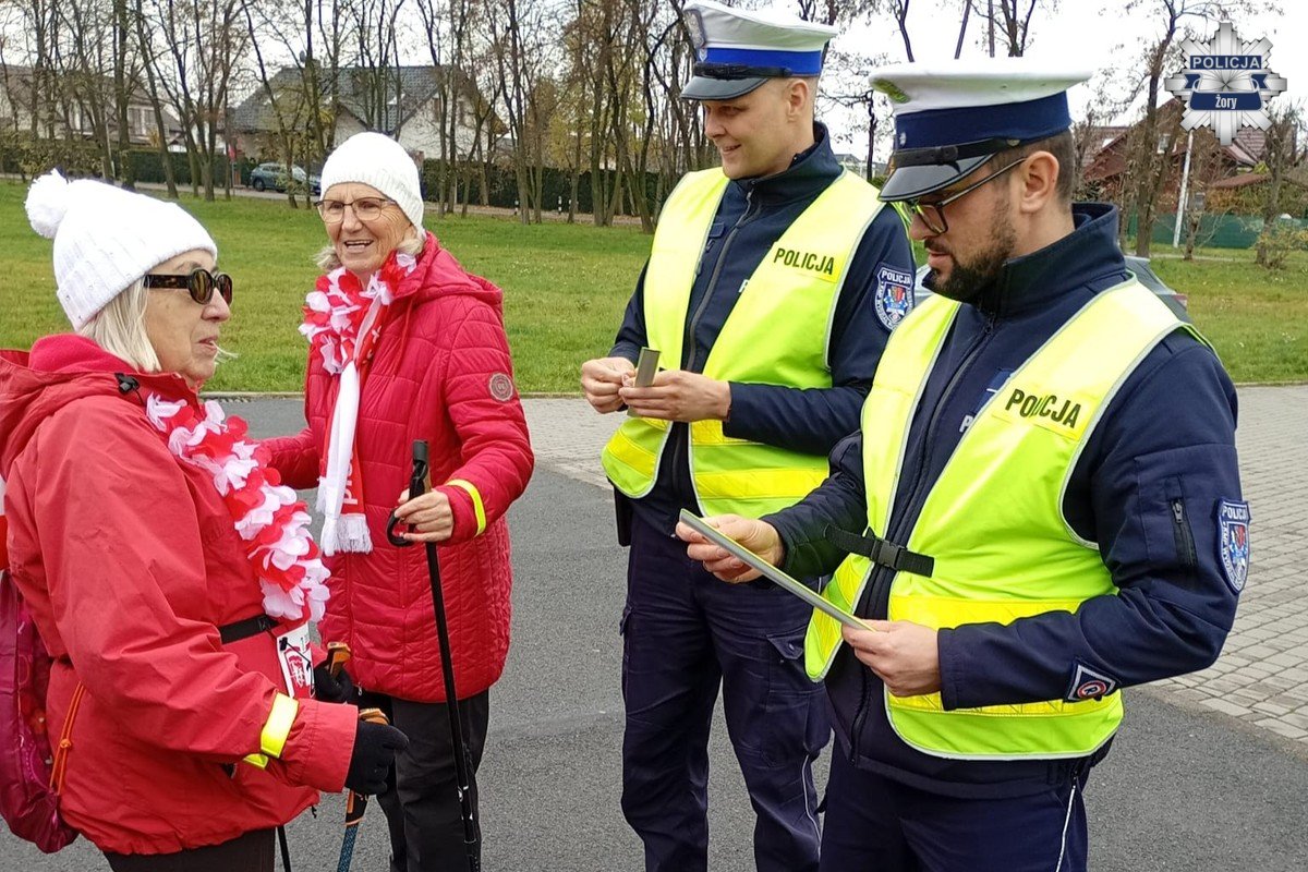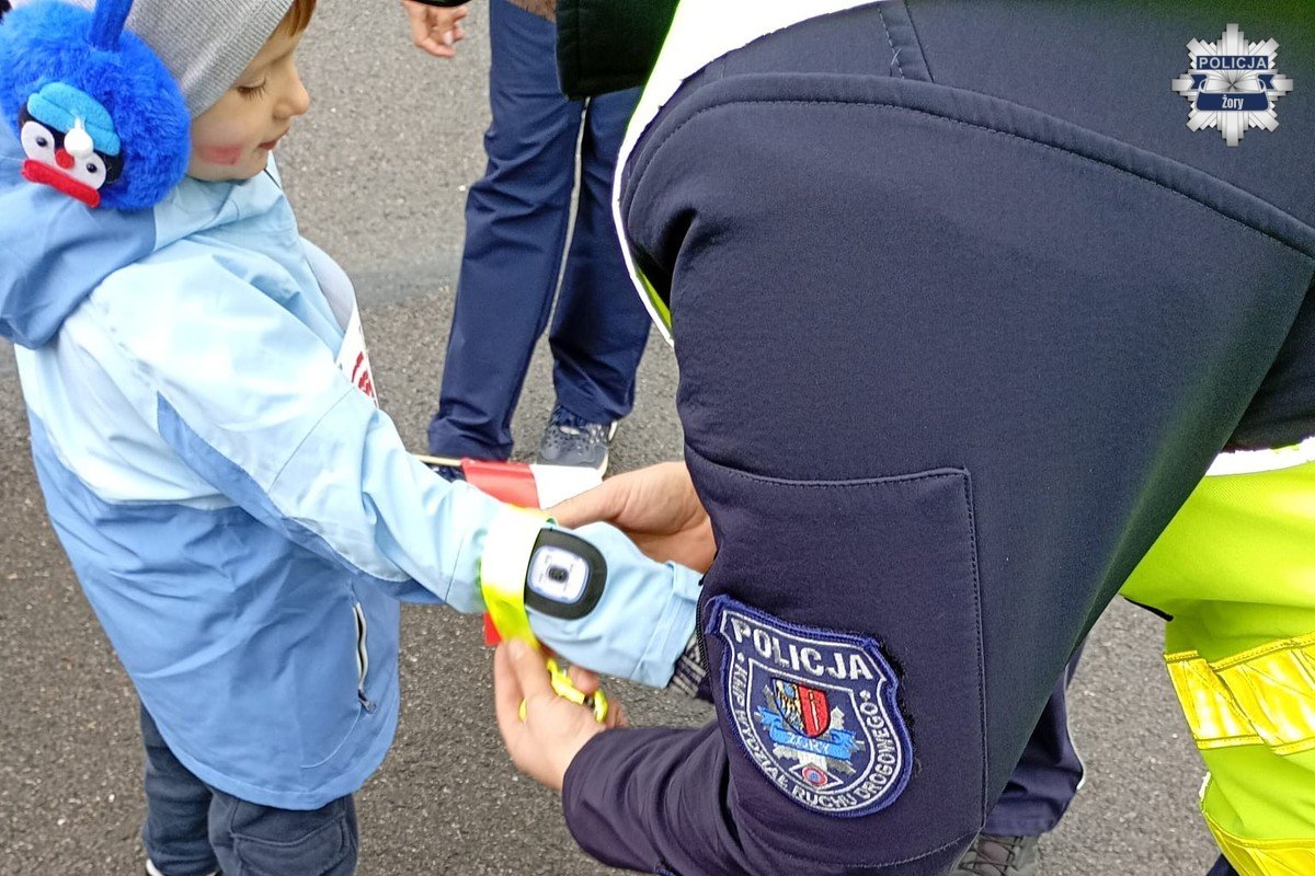 Podczas sportowego święta, jakim był 7. Żorski Bieg Biało-Czerwony, policjanci z Wydziału Ruchu Drogowego żorskiej komendy włączyli się w działania profilaktyczne związane z ogólnopolską kampanią „Świeć przykładem”. Akcja ma na celu zwiększenie świadomości uczestników ruchu drogowego na temat znaczenia widoczności po zmroku oraz noszenia elementów odblaskowych.