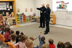 Jak należy bezpiecznie poruszać się w pobliżu dróg, kim jest oby i kiedy korzystać z numerów alarmowych? Rozmawiali o tym dzisiaj z przedszkolakami mundurowi z żorskiej komendy. Pożyteczną wiedzą na temat bezpiecznych zachowań z najmłodszymi podzielili się dzielnicowi, a także policjant zajmujący się profilaktyką społeczną w żorskiej jednostce.